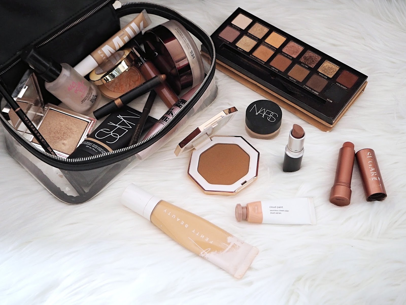 In addition to your foundation, you may want to take your daily essentials: concealer, mascara, blush, bronzer, and lip gloss or lipstick. Some natural looks will employ all of these, while others may just need one or two. It all relies on your particular preferences and the style you want.
